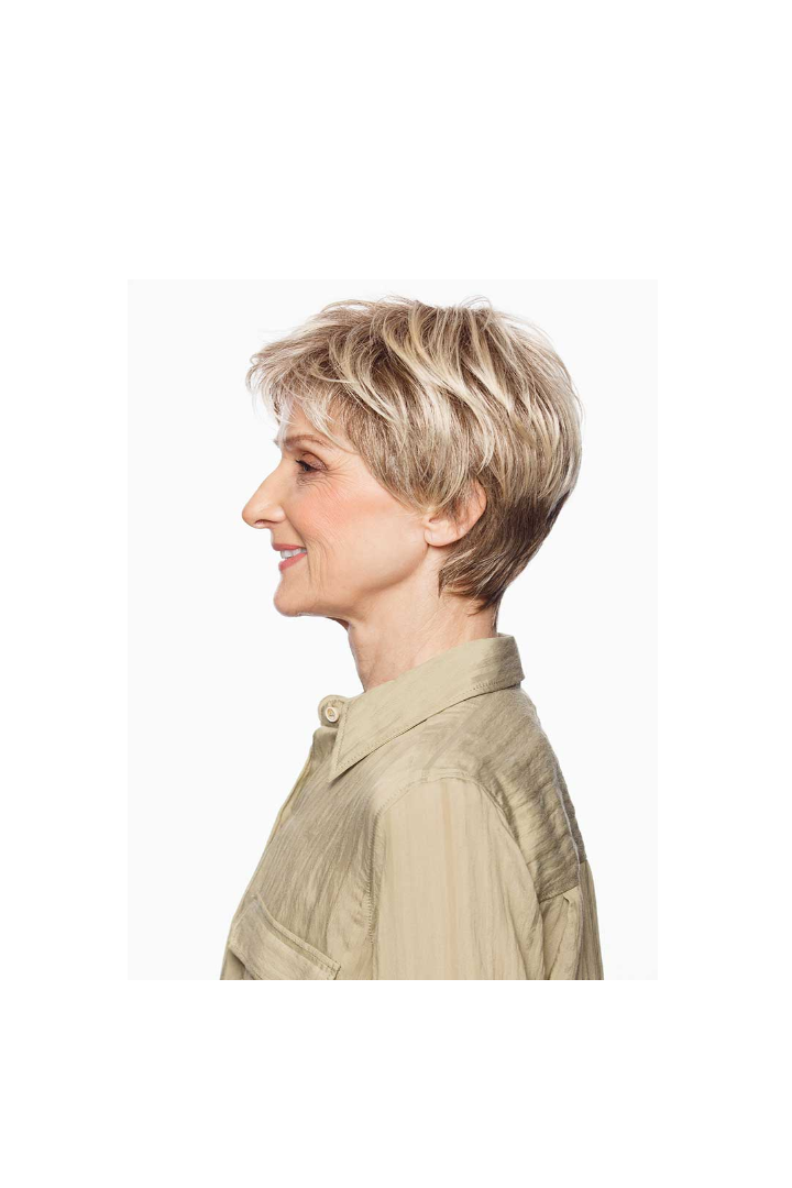 Construídas a partir de tiras de cabelo tecidas, essas perucas são costuradas à máquina em faixas elásticas de algodão e tule fino para ventilação ideal e fixação segura