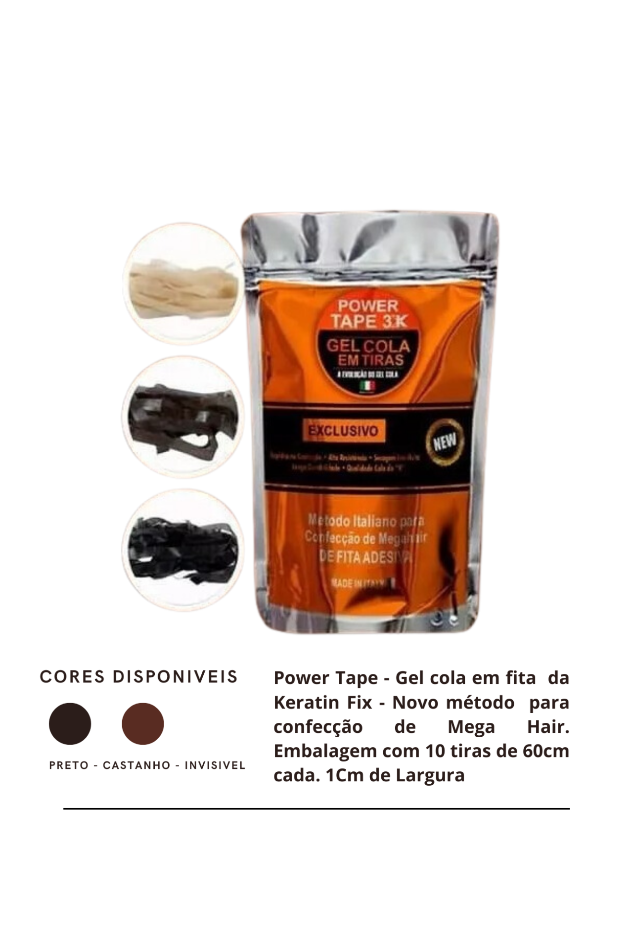 PowerTape 3K - Gel Cola Em Tiras para Mega Hair, 3 cores disponíveis!