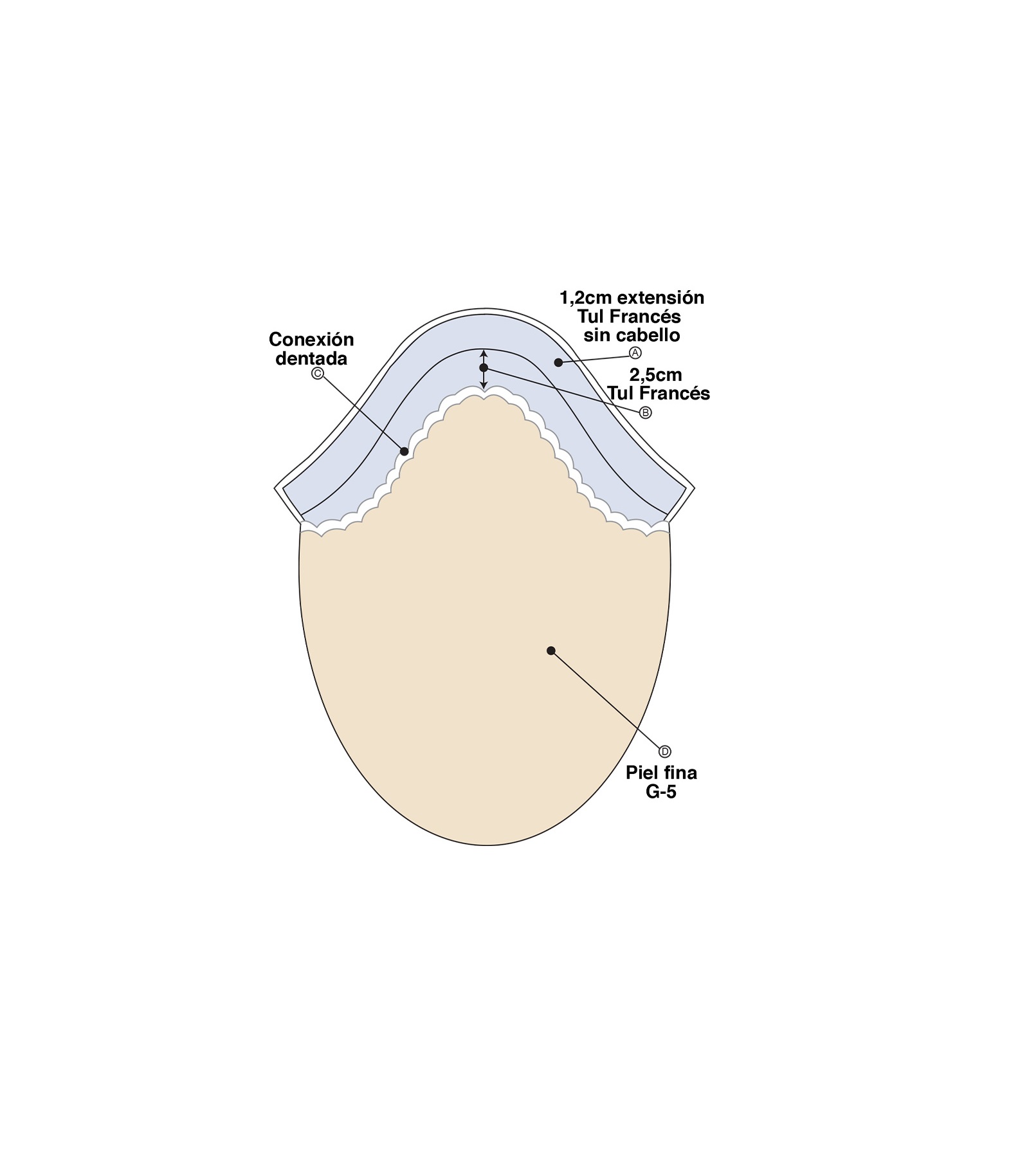 • Implantação de nó simples na parte frontal para maior realismo.