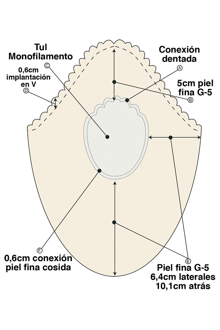 • Tule monofilamento fino no centro da base (7,5 x 10 cm).