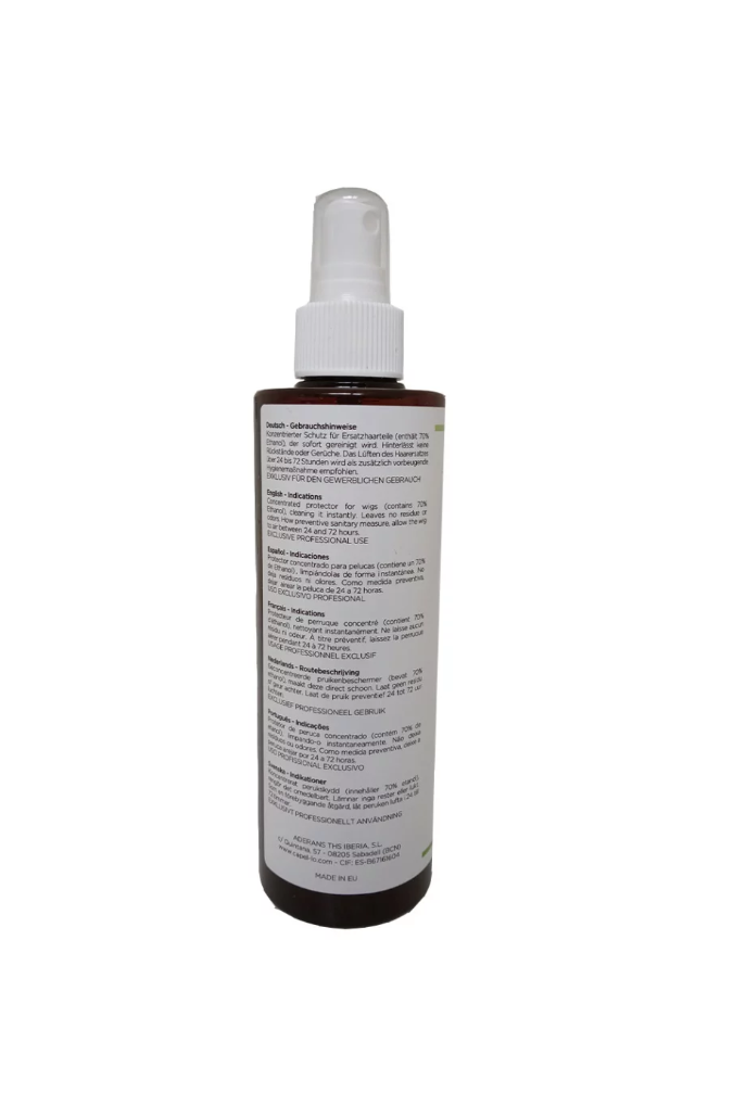 Protetor de perucas é um desinfetante concentrado para perucas que as limpa instantaneamente. Não deixa resíduos nem odores. Deixe a peruca arejar entre 24 e 72 horas.